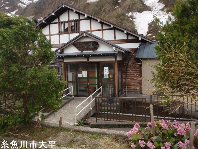 信州白馬と、海の町糸魚川の間に位置し、姫川渓谷にひっそりと佇む隠れ宿です。日本海の小さな海のまち糸魚川より、車で25分ほど山へ入った平岩地区にあります。目の前を流れる清流姫川を渡ればそこには、長野県小谷村です。そして、すぐそこには、一年を通して自然を楽しめる白馬村があります。自家源泉による湯量豊富なかけ流し温泉は、いつでも純粋な源泉を堪能できます。夜には、満天の星空を眺める絶景の露天風呂に、静かな環境、四季を彩る景観が自慢です。内湯は主浴槽が2つに区切られており、手前側浴槽は熱めで8人位,奥側浴槽は温めで25人位が入れる大きさです。ほぼ無色澄明で金気臭味,やや炭酸味があり、さらすべとした浴感がいいです。露天風呂は12~13人位が入れる岩風呂で、37~38℃の温めになっています。