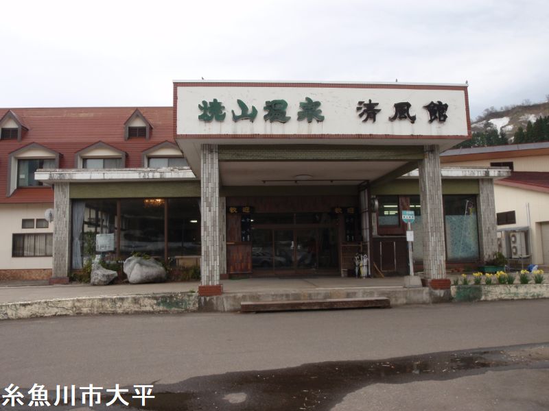 糸魚川と言えばユネスコ世界ジオパークに認定された「糸魚川ジオパーク」です。市内には24のジオサイトがあり、その内の一つに「焼山ジオサイト」があります。焼山温泉「清風館」は「焼山ジオサイト」内にある温泉の一つです。焼山温泉「清風館」は堰堤の工事中に温泉が発見され1982年に開業と比較的新しい温泉です。焼山は今から3000年前に誕生した新しい火山です。地下5キロには、マグマがあると考えられており、たびたび小規模な水蒸気噴火をおこすなど、現在も火山活動が続いています。地層にしみ込んだ雨水が長い時間をかけて地下水となり、燒山のマグマで温められました。そこに少量の火山ガスが加わることで弱い硫黄臭のする温泉となりました。清風館の温泉は、浴室も広く大きい浴槽と小さめの浴槽があります。露天風呂の大きめの浴槽は循環ですが小さい方は源泉かけ流しです。
