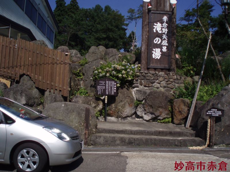赤倉温泉は、新潟県妙高市にある温泉です。スキー場が有名で、この地域では随一の温泉街を形成しています。妙高戸隠連山国立公園区域内にある赤倉温泉は、1816年(文化13年)妙高山地獄谷の湯を山麓に引いて、湯池場を兼ねた新田を開発したという事です。ここは、妙高山が目の前に迫る標高780mの高地にあり、風光明媚な所です。「金色夜叉」の作者、尾崎紅葉が1899年(明治32年)この地を訪れ、「煙霞療養」によって全国に紹介しました。温泉施設は、温泉そののもを楽しむための野天風呂です。温泉施設は、温泉そのものを楽しむための野天風呂です。泉質は硫酸塩・炭酸水素塩泉で美肌の湯。大岩石約3,000個、2,500tにも及ぶ一大岩石の野天風呂は、広々としているのでゆったりと過ごせます。