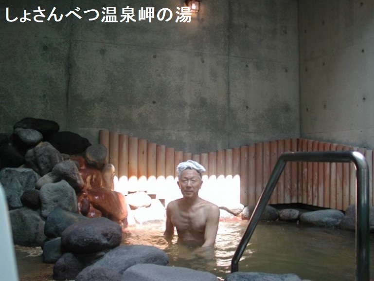 初山別村の金比羅岬:明治時代の末期、豊岬の下の浜辺に金比羅様のお札が流れ着き、地元の人によって海に戻されたという。しかし、そのお札は、何度海に戻しても幾度となく浜に戻ってきたといいます。「金比羅様は、漁師を守る海の神様です」しょさんべつ温泉岬の湯は打たせ湯、ジャグジーなどの浴槽と、日本海を望む露天風呂等を備えた温泉施設です。露天風呂もあり、ここから眺められる景色は天気のいい日は利尻富士が望めます。湯はほとんど無色透明のナトリウム-塩化物泉で、肌触りはなめらか、ぬるぬる感と少し泡付きもあります。