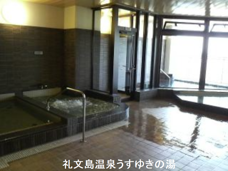 礼文島温泉「うすゆきの湯」は、礼文島の香深港そば(香深フェリーターミナルから約200mの場所)このあたりは礼文の中心で、そこにある源泉かけ流しの天然温泉です。2009年の秋にオープンしました。海の向こうには利尻富士を望む露天風呂、ジャンぐじー、サウナ、家族風呂の入浴が楽しめます。島を歩いた後にでも、のんびり利尻富士を眺めながら温泉につかって疲れを癒しましょう。透き通った湯は、源泉かけ流し 体の芯から温まる良質の湯 透き通った湯は、肌にやさしく、入浴後も長く温か さが持続します。