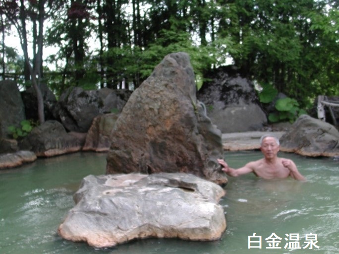 白金温泉は、十勝岳連峰の主峰、十勝岳北麓の原生林に抱かれた高原の温泉です。ここは昭和25年に美瑛町がボーリングの末、ついに得た温泉で、悲願かなって「プラチナ」のように貴重な温泉が湧いたとして、「フプラチナ=白金」と名付けられました。白金温泉は北海道中央部の美瑛町にあり、富良野や旭川からもアクセスしやすいところにあります。背後には大雪山系の十勝岳や美瑛岳、富良野岳がそびえ、白樺の美しい森の囲まれた静かな温泉地です。白金温泉のお湯はナトリウム硫酸塩泉とも呼ばれる芒硝泉で、鉄分を含むため空気に触れると徐々に褐色を帯びます。とくに神経痛に効果があると言われ、昔から「杖忘れの湯」と呼ばれてきました。