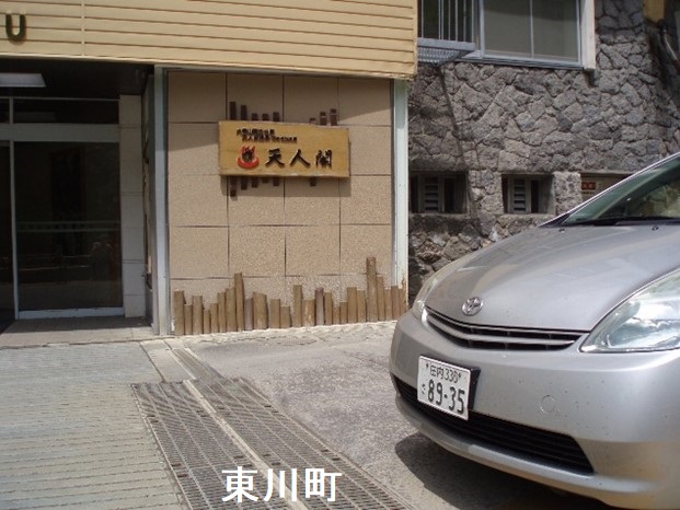 旭岳温泉とともに東川町にある天人峡温泉は、標高600m、忠別川の激流が作り出した柱状節理の美しい峡谷、天人峡の僅かな傾斜地に4軒の旅館が建っている。温泉の歴史は、1897年、旭川で旅館業を営んでいた松山多米蔵が発見したもので、3年後に松山温泉と名付けて開業した。後に経営が変わったが、現在の天人閣にその歴史が脈々と伝えられている。天人閣は2000年に創業100年を迎えた老舗旅館である。音を立てて奔流する忠別川を跨ぐ赤い橋を渡った先、旅館街の一番奥にある。川の対岸にそそり立つ巨大な一枚岩(涙岩)を望む露天が魅力です。