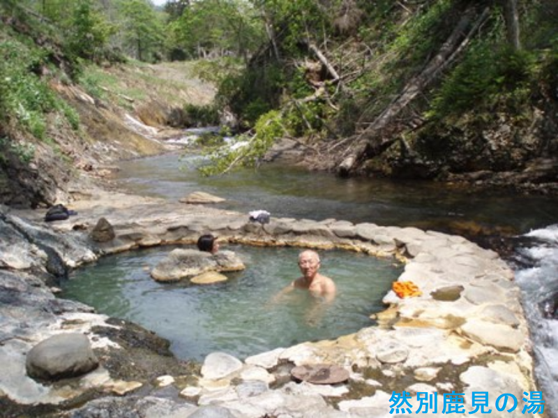 大雪山の懐深く、大自然に包まれた然別峡の一軒宿管野温泉からさらに車で5分ほど林道を分け入ったユーヤンベツ川河畔は、野趣あふれる野天風呂の宝庫です。すべて無料で手造りの野天風呂が幾つも見受けられます。聞こえるのは川の瀬音と鳥の囀りのみ、手つかずの大自然に癒されるのには打って付けの秘湯群です。鹿見の湯は、ユ-ヤンベツ川の清冽な流れにせり出すようにして造られています。四季を通して利用できる道内屈指の野天風呂!湯船は、石をコンクリートで固めた素朴なものです。しばしばエゾシカにも会えますよ!