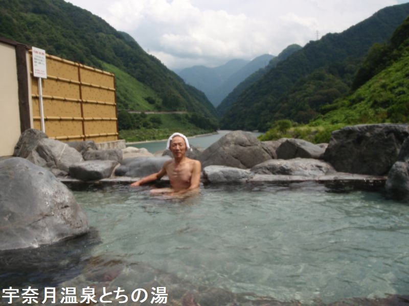 宇奈月からトロッコ電車で1時間、黒部峡谷の河原に沸く温泉です。河原を掘り石を積んだいくつかの露天風呂と洞窟岩風呂があります。文政年間に開湯した湯は、名湯百選にも選ばれた峡谷随一の名湯です。湯に浸かり対岸の雪渓、黒部川の清流、百貫山や峡谷の木々を眺め、大自然の中に溶け込んでいる感じです。河原に下りて一番目立つ位置にあります。よく観光ガイドブックにも登場するので有名です。渓流に沿った絶好なロケーションで、開放感あふれる露天風呂ですので、観光客が多く訪れる上に極めて目立つ立地なので、さすがにここで裸になって入浴するのは勇気が必要です。
