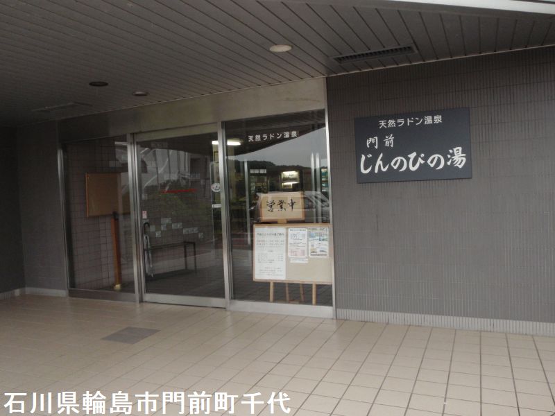 能登半島の西側、門前町にある宿泊施設「ビュー・サンセット」に隣接する日帰り温泉施設が「門前「じんのび」の湯」です。宿の名前からもわかる通り、この辺は夕陽を眺めるのに適した夕陽スポットになっていて、日本海に沈む夕陽を優雅に眺めることができます。内湯は外側のガラス窓際に大きな浴槽があります。また小さな水風呂とサウナもあります。湯は無色透明で、天然ラドン温泉との事です。掛け流されていて、浴槽から湯が溢れて床を流れています。湯はサラッとしていて、さっぱりとした感じです。ラドン泉なので特徴的なものはないのかと思いきや、僅かながら塩味を感じる湯です。露天風呂は、小ぢんまりとした岩風呂です。外気に吹かれながら湯を楽しめます。