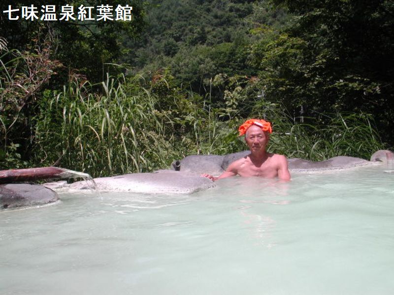 七味温泉は、信州高山温泉郷の中でも一番奥にある山の中の温泉地です。3軒の宿があり、どこも日帰り入浴もできます。七味温泉のある松川渓谷の紅葉は、信州随一の紅葉の名所とされ、七味温泉では、紅葉を見ながら静かな掛け流しの露天風呂に入れるので人気があります。入り口にある「紅葉館」も、名前通り紅葉が売りで、本館と、道の反対側に野天風呂のみの別館があります。まさに秘境の宿です。渓谷添いの野天風呂は、大きな岩を自然な感じに組み、野趣溢れ開放感満点な豪快な岩風呂です。眺望も良く向かいの山肌を見ながら、緑っぽい乳白色の不思議な色のお湯につかれます。