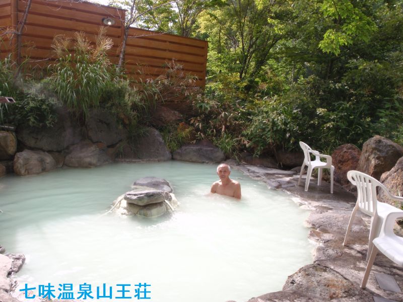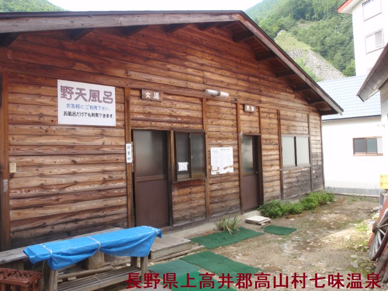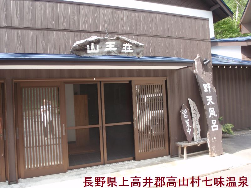 信州屈指の温泉大国「高山村」は、村の中央を流れる松川渓谷沿いには計8つの温泉が点在し、何れも秘湯ムードの漂う素晴らしい温泉です。松川渓谷は紅葉の名所としても有名で、秋の紅葉シーズンになると、全国からたくさんの観光客がこの地へ訪れます。その松川渓谷の最奥、深い山峡の地にあるのが七味温泉で、7つある源泉の味と色がそれぞれ違う事から、その名が付けられました。昭和36年に電気が引かれるまでは「ランプのいで湯」でもあり、交通の便が良くなった現在でも、深い渓谷を通る険しい道の先にある秘湯です。「山王荘」は、中でも一番奥にある山の中の温泉地です。エメラルドグリーンの源泉かけ流しの温泉で内湯と露天風呂があって露天風呂の真ん中には石が置いてあります。湯加減もちょうどよく露天風呂に入りながら空と緑の木々が良い感じです。館内はやや狭く古びた湯治宿ですが、風呂場はけっこう新しく掃除も行き届いていいます。内湯と続きの渓谷露天はシンプルな構成です。