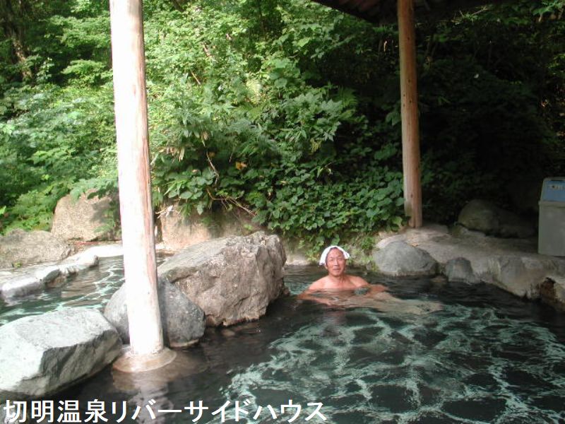 かつては、陸の孤島で最後の秘境と云われていた長野県の秋山郷は、今では道路も完全に舗装され、紅葉の名所として知られています。秋山郷の一番奥にある切明温泉は河原を掘れば温泉がこんこんと湧きだしてくる湯量豊富な所です。リバーサイドハウスの大浴場は平成10年4月に新築されたものです。浴場は中津川に面しており夫婦岩や夫婦滝も望める絶景です。源泉は河原の手掘りの温泉で掛け流しになっています。