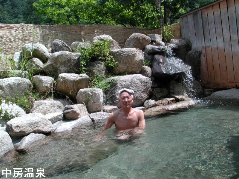 昔からの湯治場の良き面影を残した山奥の秘湯.中房温泉は、日本アルプスの緑豊かな中腹に位置する季節限定の温泉旅館です。海抜1462m北アルプス燕岳の中腹にある中房は、まさに温泉天国です。裏山は流れ出る温泉の噴気と湯煙に包まれています。湯口が36カ所もあり、湯の量は量り知れません。閑静な山の冷気の中で聞こえるのは湧き出る湯の音だけです。白滝ノ湯、御座の湯、滝ノ湯、蒸湯、薬師の湯、大浴場、大湯、岩風呂、菩薩の湯、わたの湯、不老泉、月見ノ湯と、入り切れぬほどの露天風呂の数があり、見上げる星空との競演は、ため息がもれるほど美しい。まさにアルプスの幻想です。