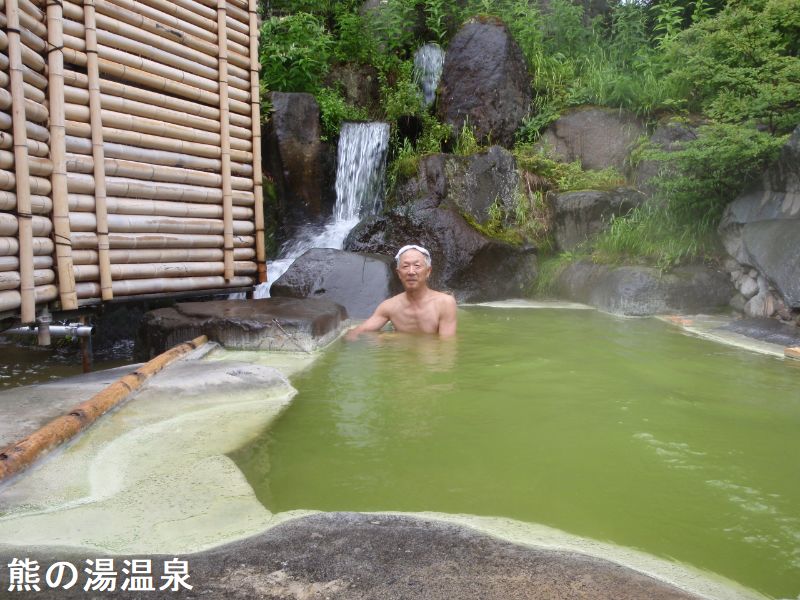 1848年に幕末の蘭学者・兵学者として知られている佐久間象山が、志賀高原の開発のため行った調査の際、手負いの小熊が傷を癒しているのを見て「熊の湯」を発見したと云われています。大変特徴のある湯の色で一度入れば記憶に残ります。熊の湯温泉は、志賀高原から草津温泉方面に行く道から、ほたる温泉のホテルの立ち並ぶ手前を右に入った場所にあります。鮮やかな黄緑色の掛け流しのお湯で、古くから名湯として人気があります。「熊の湯」の名前は、子熊が傷を癒していた、という逸話に基づいています。