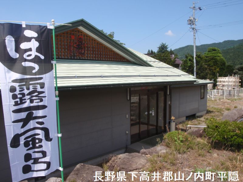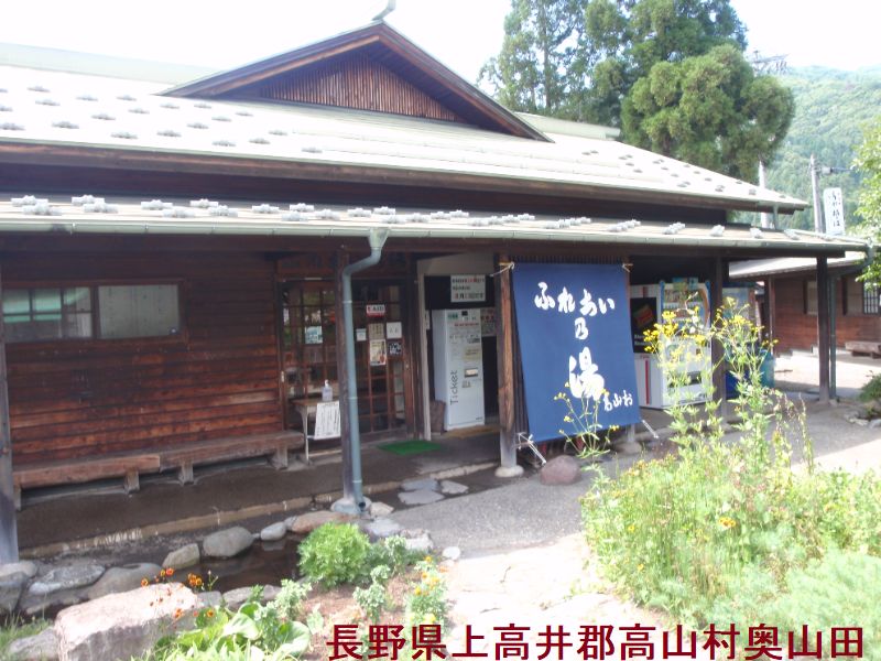 高山村は長野市から北東にある山村です。高山村を流れる松川沿いに、山田温泉、七味温泉など7ヶ所の温泉があって信州高山温泉郷となっています。高山村の中心部に作られた森林スポーツ公園の一画にYOU遊ランドがあります。スポーツ公園には、フィールドアスレチック、屋内ゲートボール場、ターゲットバードゴルフ場があって、温水プールのYOU遊ランドは、その中心施設です。白いドーム型屋根の特徴のある大きな建物で、温水プールとウォータースライダーがあり、プール脇にはジャグジーがあります。同じ建物に温泉の浴室と露天風呂があります。温泉の方は、内湯は大きなガラス窓の袂にひとつの総タイル張り湯船があって満々と満たされた透明なお湯が湯船から溢れています。露天風呂は、小さなチョッと深めの扇形湯船がひとつ佇んでおります。澄んだ空と山の新鮮な空気がすこぶる気持ちよい温泉です。