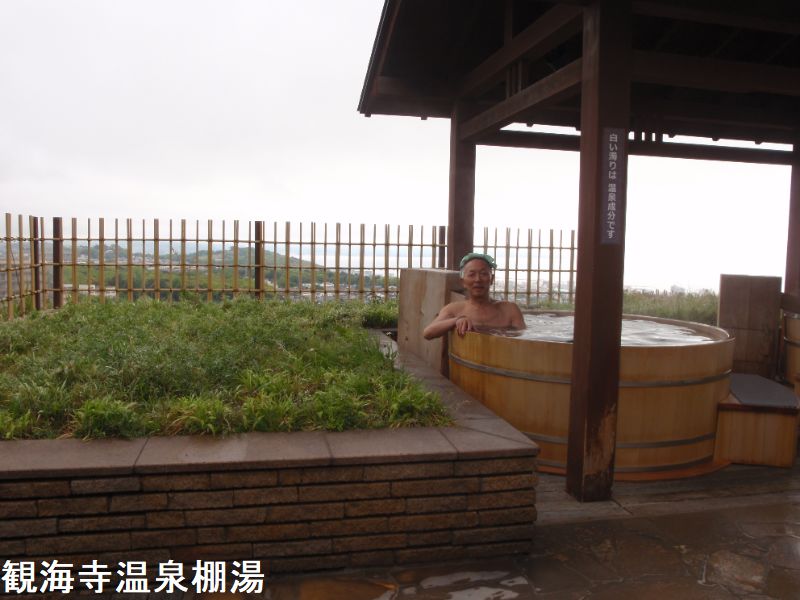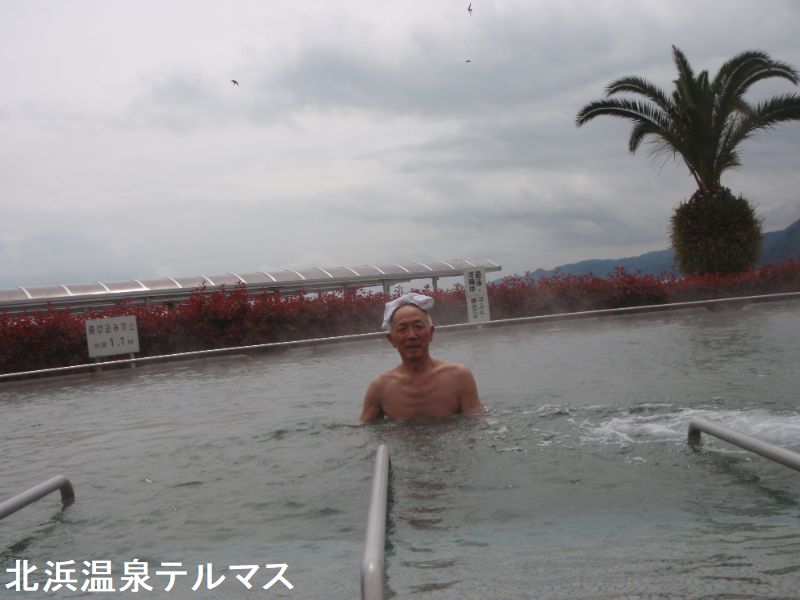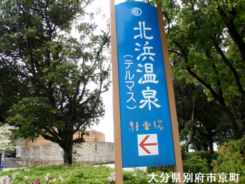 昭和初期までの別府の海岸線は、砂浜のいたるところから湯が湧き出し、天然砂湯となっていました。旧国道が海岸通りを貫く今の路線となり、護岸も高い堤防に変わった事により、消滅してしまいました。別府駅から東に1kmほど、的ケ浜公園脇にあるスパビーチの目の前に建つ三角屋根の建物、それが北浜温泉テルマスです。何だか怪獣のような名前ですが、ラテン語で「浴場」を意味するのだそうです。北浜温泉(テルマス)は平成10年10月にオープンした大型温泉施設です。水着を着て屋外健康浴ができる開放的な市営温泉で、別府湾に面した絶好のロケーションで、ジャグジー、蒸し湯、ミストサウナのほか、男女別の内湯、露天風呂なども楽しめます。無色透明、無味無臭でオーバーフローは十分あります。屋外には塩湯と名付けられた露天風呂があり、自家源泉で源泉掛け流しの塩化物泉があります。かつての天然砂湯はこんな泉質だったのだろうと想像されます。