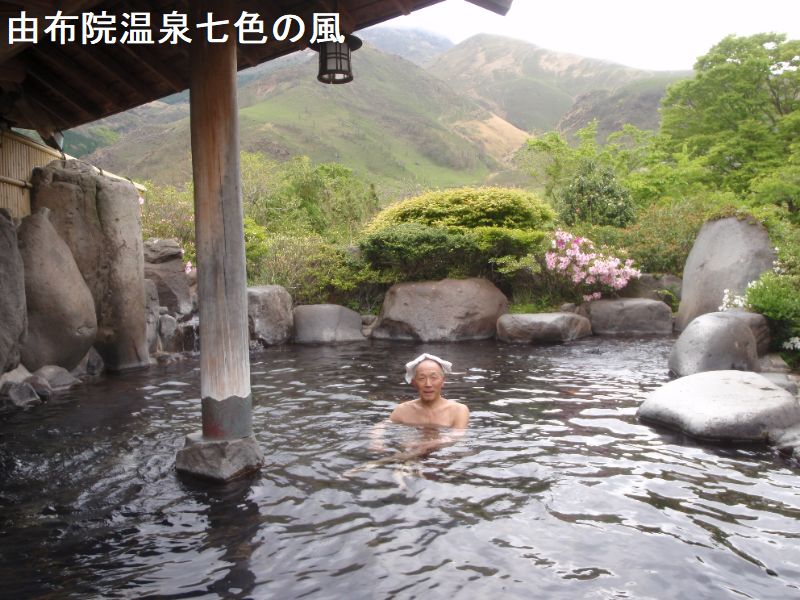 日本一のおんせん県と呼ばれる大分県の湯布院は、豊後富士と呼ばれる由布岳の麓に広がる温泉地です。湯布院名物の朝霧がうっすらと明けると、目の前には雄大な由布岳がそびえたっています。湯布院を一望できる高台にある合掌造りの建物が印象的で、ひときわ目立つ大きな外観が「ゆふいん七色の風」です。目前にせまる由布岳を望みながら入れる広大な天然温泉の露天風呂でぬくもるのは最高の贅沢かも知れません。広々とした全面ガラス張りの大浴場や由布岳が一望できる露天風呂があります。男湯は高温サウナ、女湯はスチームサウナがあり、露天風呂から見える由布岳は雄大で、手前に見える飯盛ヶ城などの緑がきれいです。また一度に100人入浴可能な大浴場もあり、疲労回復や冷え性などに効果があるナトリウム-塩化物泉は、肌にやさしいやわらかい温泉です。