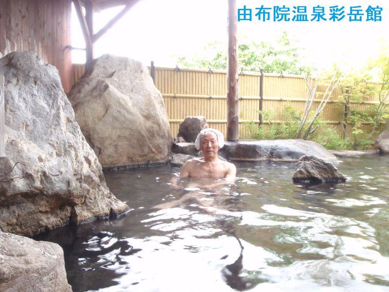 柚富の郷彩岳館は、由布岳を正面から見る事が出来る旅館です。由布院温泉は小さい町ながら、温泉の源泉数、総湧出量ともにお隣の別府温泉に次ぐ国内第2位という豊かな温泉地で、大地からのエネルギーを存分に味わうことができます。当館も敷地内に2箇所の泉源を持ち、そこから湯量たっぷりの温泉が湧いており、それを贅沢に源泉かけ流しで楽しむことができ、温泉のパワーを体中で感じることができます。温泉は男女別の大浴場と家族風呂(貸切風呂)が2室設けられています。大浴場は内湯と露天風呂があり、湯は肌あたり優しい浴感。立ち寄り湯でも利用出来ます。広い露天風呂は、巨石を使っていて野趣にあふれます。湯は加水、加温なしの源泉掛け流しで、2か所の泉源から湧出するたっぷりの湯を楽しむことができます。開放感溢れる露天風呂に浸かると雄大な由布岳が目の前に広がります。日頃の喧噪から離れて、ゆっくりと浸かる温泉は至福の時になります。