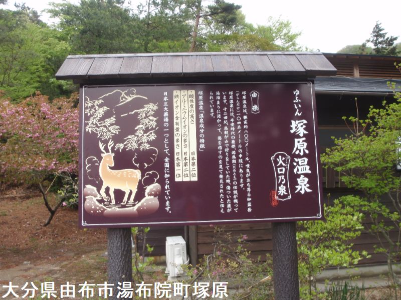 塚原温泉の歴史は古く、今から800年ほど前の12世紀、平安時代に開湯したと伝えられています。大正から昭和時代にかけては、現在の立地に三軒の旅館が営業していました。塚原温泉の湯は、その地底からにじみ出る雨量によって変化するのが特徴です。また、湯場から徒歩5分で標高1045mの伽藍岳中腹にある天然地獄の火口を見学する事が出来ます。雄大な塚原高原を背景に蒸気を吹き上げる地獄は大地の息吹を感じるパワースポットです。火口乃泉のお湯の色は、エメラルドグリーンで、そのお湯は日本で2番目に高い、レモンより数十倍強い強酸性です。口に少し含んでみると本当に酸っぱいです。石鹸などは泡立たず、使用するとべたつくため使用不可です。しかも、このお湯の特徴は酸性度の高さだけでなく、鉄イオンの含有量が日本一、アルミニウムイオンの含有量が日本第二位というとてつもないお湯です!美肌効果が高く、入浴後に肌が乾いたときに成分が肌に浸透することから、1~2分浸かって乾かすのを繰り返すと効果的が良いとのことです。