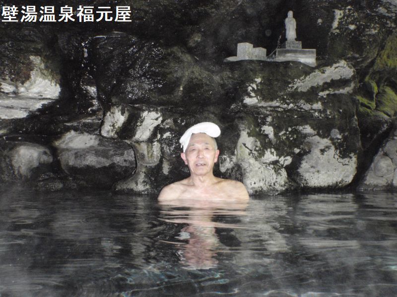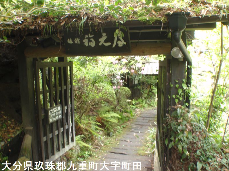 筑後川の源流のひとつ、町田川に沿って車を走らせると、大きな昔ながらの看板が目に入ります。車を置いて宿への細い道を下ると、岩壁が川面に大きく迫り出し、ここの名物の天然洞窟風呂が威容を見せます。なるほどこれは壁湯だと納得させられるほどの迫力がある。明治の初めから湯治客や旅の商人を相手に名湯を守ってきました。源泉が39℃と少しぬるめの温泉で、柔らかく、長く入浴されても湯疲れしません。古くから胃腸や皮膚病などに効果があると言われ、飲用することもできます。露天風呂の1段下に川に面した露天風呂もありますので、四季折々の風景と共にゆっくり楽しめます。湯は無色透明、浴槽の底には岩があり足元の岩間から湯が湧いているので新鮮です。源泉温度か低いのでちょっと寒いですが、じっくり長湯していると身体に泡が沢山付いてじんわり温まってきます。この温泉、なんと300年前から自噴している歴史ある温泉です。