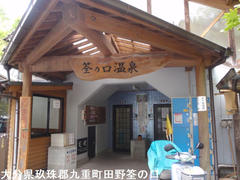 筌の口温泉は正保(1644~1647年)の頃から村人が入浴していましたが、 享保13年(1728年)に田野徳右衛門が湯小屋を建てたのが温泉地としての始まりです。 明治の中期に旅館が建ち、営業するようになりました。 昭和27年に川端康成がこの地を訪れ、後に九重を主舞台とした小説「波千鳥」を出版しました。浴室内は広々としていて天井も高く、中央に20人は入れそうな大きな浴槽がどんとあります。 その大きな浴槽内の一角に少しだけ区切られたスペースがあり、その一角で水を入れて温度を調節してぬる湯で入れるようになっています。 他に家庭用のバスタブの様な水風呂(本当に浸かれるのかは不明)があります。お湯は炭酸泉の茶褐色の濁り湯で、浴槽内の底は全く見えません。しかし湯は湯口から出てくるときは透明で、飲泉が出来ます。飲んでみると、酸味と金気の味が広がります。床や浴槽のふちは茶褐色、温泉成分がびっしり付着していました。これぞ温泉!という大満足の湯でした。