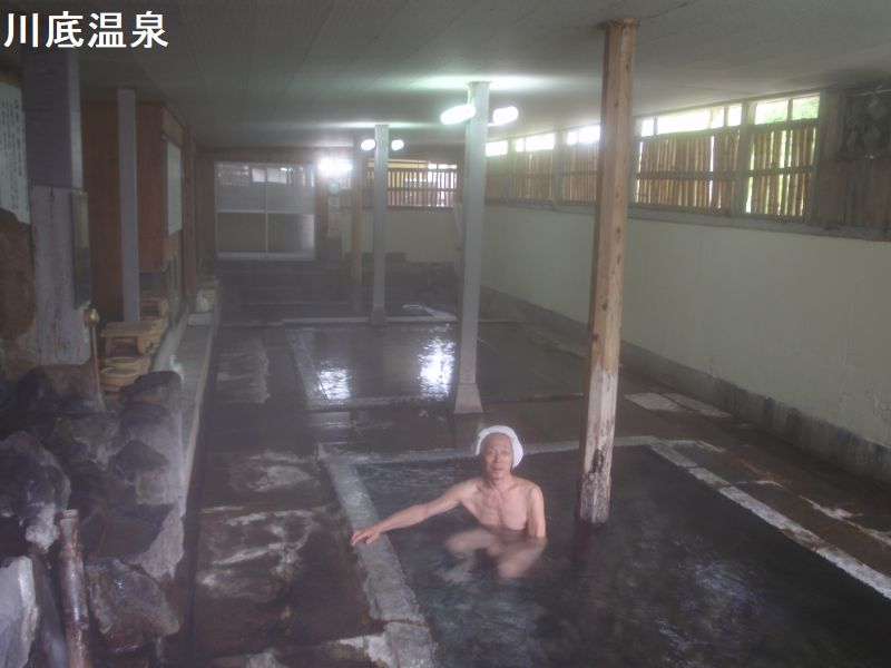 川底温泉は宝泉寺温泉郷のひとつで、開湯は901年という歴史ある温泉地です。旅館蛍川荘は川の底から湧き出している新鮮なお湯を楽しめます。川底温泉は菅原道真公ゆかりの温泉で、11,000年以上もの歴史があります。河原から湧く温泉の上に湯船があるので、湯船の底から透明度の高い無色透明の新鮮なお湯が湧き出している。湯底には河原の丸石が敷かれていて、河原に入っている気分になれます。延喜元年(901)8月、菅原道真が大宰府に左遷される途中に刺客をのがれて菅原の白雲山浄明寺に身を隠した折、この川底温泉を開いたと言われています。 安政3年(1856)本村の庄屋菅原元徳が村人のために温泉開発を行い、現在の石畳の浴槽を造り、湯小屋宿屋を建てたと伝えられています。