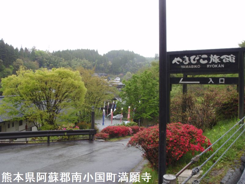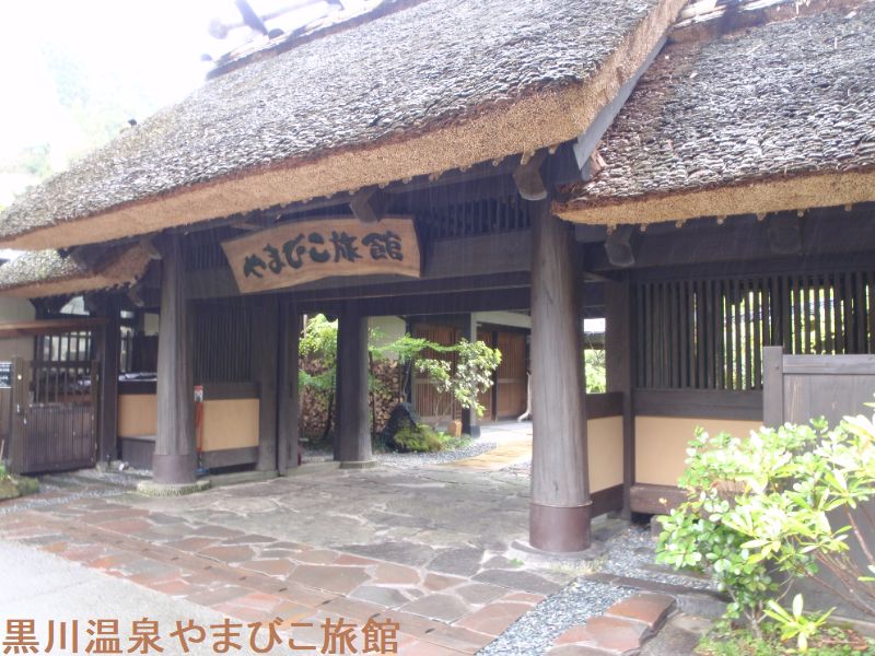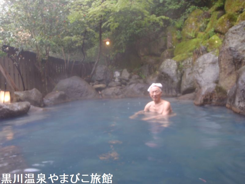 南小国町は阿蘇五岳を囲む外輪山の北側と東側・九重連山の山裾が交差する標高400m~900mの起伏が激しい高原に位置し、一部は阿蘇九重国立公園に所属しています。町の中を筑後川の支流が北側に流れ、町域の85%が山林原野を占める自然と温泉に恵まれた町です。町域の温泉は数多く、田の原川の渓谷に沿って旅館が立ち並び、平成に入って癒しの温泉として大ブレイクした黒川をはじめ、満願寺・田の原・扇・白川・小田などの情緒ある温泉が数多く点在しています。やまびこ旅館は黒川温泉中心部より少し離れた場所に建っています。ホテルによくある建物の上へ「やまびこ旅館」と大きく書いてあり遠くからでも見つけ易いです。ここは仙人風呂が有名で、黒川温泉内でもかなり雰囲気がいい造りとなっています。仙人風呂の大と小は日替わりで混浴と女性用へ入れ替わります。小さい方は大きい方と比べると5分の1ぐらい違うのではないかというほど大きさが違います。湯は若干青みがかつて見え、かすかに硫黄の香りがするような気がします。