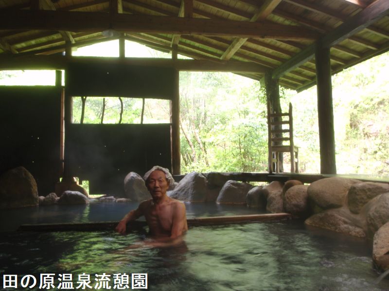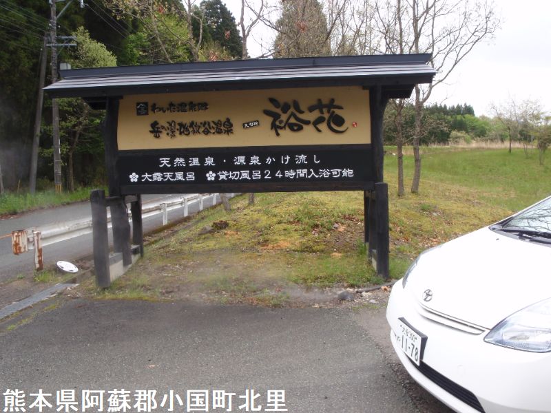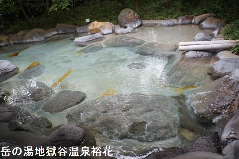 地獄谷温泉 「天狗松裕花」 は、わいた温泉郷の中のひとつで、 すごく人気がある温泉です。人里はなれた山奥にありながら、親しみの持てる日帰り温泉施設。野趣あふれる大露天風呂が自慢で、照明に浮かび上がる夕暮れ時は幻想的な雰囲気です。平成18年4月15日早朝、当家の主人が五色の水玉模様の大蛇を抱く夢を見たのと時を同じくして、太宰府宝満山麓の妙香庵に祭られ弁財天が「我行かん」とお告げになり、此れ地裕花に祭祀されることと成りました。こうしてこの美しい自然の景観に誕生したのが、「岳の湯地獄谷温泉裕花」です。裕花は、全て源泉掛け流しの、森の中に佇む湯屋で、森林浴気分で湯浴みを楽しむことができます。大露天風呂へ続く母屋を中心に、離れの貸切温泉が点在します。切り石、岩、ひのき、桶の4種の貸切温泉は24時間利用でき、客ごとに温泉を入れ替えるコインタイマー式なので、いつでも清潔な一番風呂をお楽しめます。敷地内には温泉の蒸気を利用した蒸し釜もあり、野菜やタマゴを蒸して食べることができます。(カメラ持ち込み禁止のため入浴撮れず)