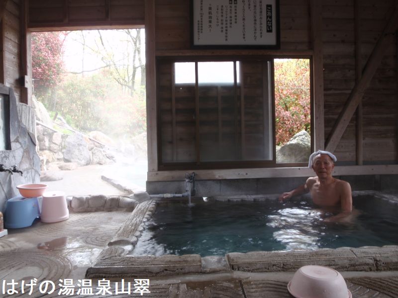 はげの湯温泉は、熊本県阿蘇郡小国町にある温泉です。九重連山のひとつである標高760mの涌蓋山西麓の、のどかな高原状の山地にあり、岳の湯温泉、地獄谷温泉、山川温泉、麻生釣温泉、鈴ケ谷温泉と共に湧いた温泉郷を構成しています。小国町の中では最も高台にある旅館で、山翠は標高750メートルに位置する旅館です。はげの湯温泉の一番高台に位置する「旅館 山翠」は、大人限定の温泉宿で、18種類もある風呂を宿泊者は無料で楽しめます。本館で受付を済ませて坂道を上がっていくと湯屋があり、無料の休憩所の奥にある入口の先に、男女別の内湯と露天風呂、洞窟風呂、家族湯が続きます。そして、宿の敷地内の中で最も高台に位置するのが一番人気の混浴露天風呂「仙人の湯」。はげの湯の湯けむりを一望でき心身ともにリラックスできる「仙人の湯」は、源泉掛け流しの単純硫黄泉で優しい湯触りです。天候や季節によっては雲海を見渡すこともできる知る人ぞ知る絶景露天です。