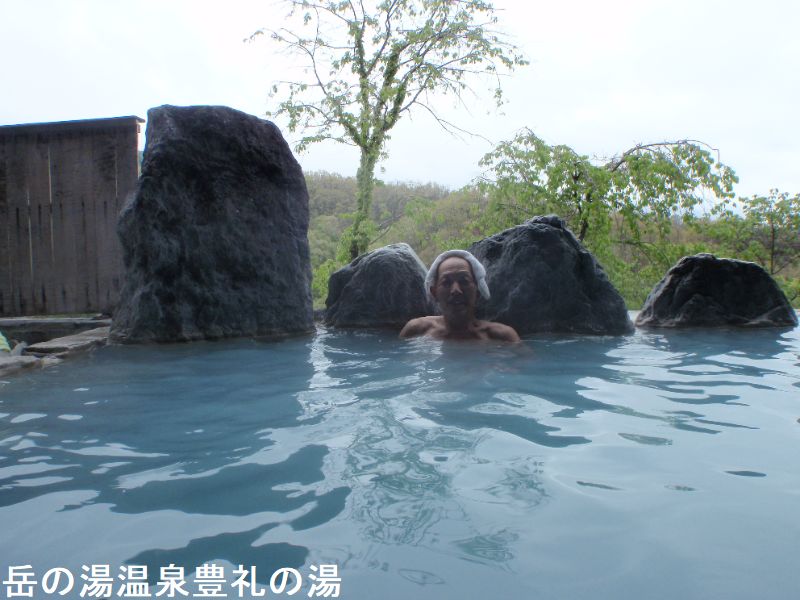 小国町は熊本県の最北端、阿蘇外輪山の裾野にあり、筑紫次郎と呼ばれる筑後川の上流に位置している。大分県との県境には、九重山系の秀峰で標高標高1500mの湧蓋山が聳えています。その形から小国富士ともよばれ、山裾では、いたる所で湯煙が舞い上がっています。「はげの湯」「岳の湯」「山川」などの温泉群がそれです。岳の湯温泉にある温泉施設「豊礼の湯」の露天大浴場と貸し切り風呂からは、雄大な涌蓋山を眺めることができ、開放感が抜群です。珍しいホワイトブルーのにごり湯には、ほのかに硫黄の香りが漂っています。コインタイマー式の貸し切り風呂は、檜造りや石造りの露天風呂など3タイプがあります。利用のたびに湯を入れ替えるので、いつでも一番風呂が楽しめます。最初は勢い良くお湯が入り、浴槽にたっぷり溜まると差し湯になります。 湯船にお湯が溜まっていくに従って、だんだん白濁したお湯の様に見え、お湯がたっぷり溜まると確かに乳青色に見えてきました。