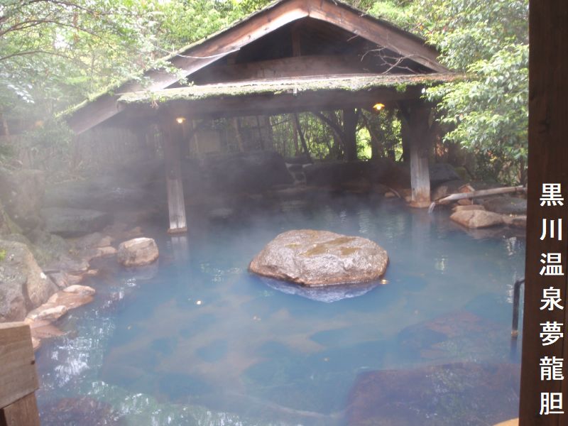 黒川温泉瀬の本館は黒川温泉中心部に位置し、清流田ノ原川のほとりに面した情緒溢れるお料理自慢の純和風旅館です。黒川温泉のなかでは広い道路から入って行けるのでアクセスのいい温泉旅館です。和モダンな雰囲気の黒川温泉には年間100万人もの観光客が訪れ、女性人気No.1の温泉とも言われています。「夢龍担」は、黒川温泉街の入口に佇み、築50年を迎える木造の純和風旅館です。吹き抜けの空間に独特の和の光があり、窓からはせせらぎが心地よい田の原川と水車がゆっくりと音をたてて回っている日本庭園があります。ゆったりとした広さの混浴露天風呂「りんどうの湯」と情緒あふれる「天女の湯」で、こころ安らぐひと時が過ごせます。内風呂には男女ともに天然のミストサウナを完備してあります。その他にも阿蘇リモナイトの岩盤浴や宿泊者専用の貸切風呂あります。