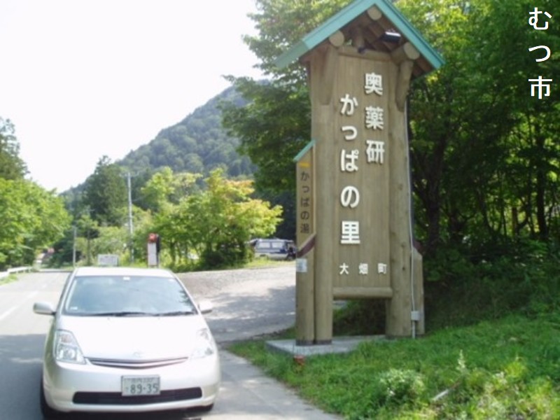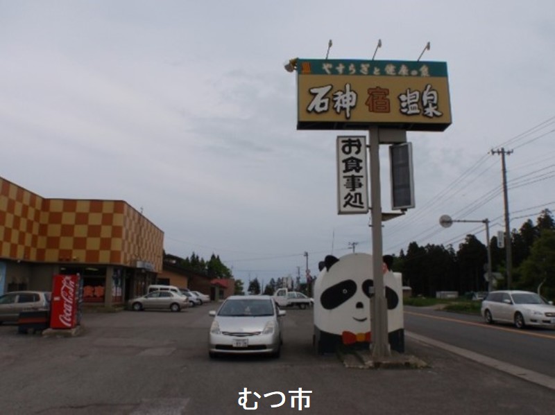 むつ市の北、大畑方向へ向かう国道279号線で津軽海峡に出る手前の道沿い左側にある温泉です。ドライブインと旅館業を兼ねる傍ら公衆浴場としての機能を有しており専ら地域住民の公衆浴場として親しまれており、次から次へとお客さんがやってきて賑わっています。建物は本館と浴場棟からなり、男女別の浴室は内湯と露天風呂があり、ともに敷地内の地下700mから湧出する金気と茶錆鉄沈を伴う強食塩泉で加熱かけ流しで利用しています。床が赤黒く染まり,天井はやや煤けてきていますが,これはお湯の素質が良いためです。