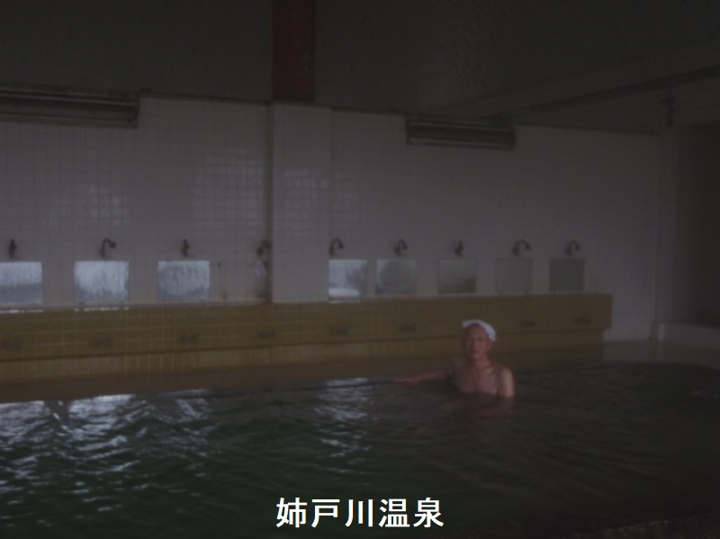 青森県の上北地方、東北本線・小川原駅の真ん前に、素晴らしいお湯を楽しめる共同浴場「姉戸川温泉」があります。駅前だというのに閑散とした場所ですが、そんな土地柄だからか、いつ訪れても空いているような気がします。勿論その方がお湯を独占して楽しめるわけです。湯船は内湯1つと打たせ湯があります。浴槽へは金属のパイプから豪快にドバドバお湯が注ぎ込まれ、浴槽からもザブザブと溢れ出ています。従ってお湯は常に新鮮そのもので、やや褐色掛った透明のお湯で弱い重曹味が感じられ、ほぼ無臭です。ツルツルスベスベの気持よい浴感で、肌に泡つきがあります。ぬるめの温度で長湯できて爽快です。いつまでも浸かっていたいお湯です。浴室中に響き渡る、大瀑布のような打たせ湯の音が豪快です。滝の音以外には何も聞こえません。大量掛け流しを目にしながら広々した浴室を独占できる時間は、まさに至福のひと時です。