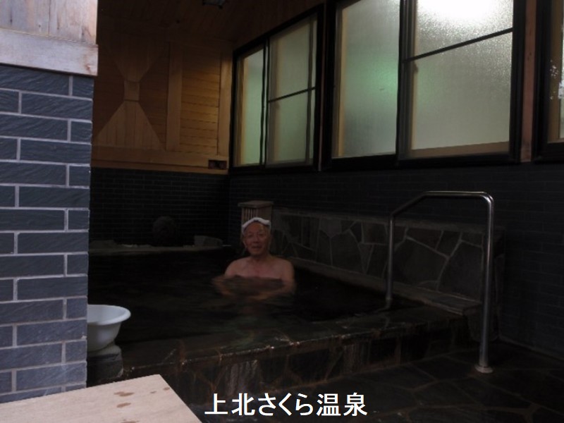 東北町は、豊富な湯量を生かした町内全湯源泉掛け流しという贅沢で豊富な湯量の源泉が町内に32ヵ所もあります。温泉毎温度や肌触りが微妙に異なり、自分の身体に合った温泉を探すという楽しみもあります。上北さくら温泉は、東北町上北地区に位置し、近くには小川原湖、そして三沢市などがあり観光の拠点としても大変便利です。湯口から絶え間なく注がれる源泉は、温めの自噴源泉と熱めの二つをブレンドして温度調整をしつつ浴槽へと供給しています。薄い黄色の透明でほぼ無味無臭ながら、僅かにモール泉の痕跡みたいな知覚が感じられました。銭湯なのに露天風呂があるのは立派です。和風テイストを強調した造りで、頭上は屋根で覆われており、浴槽は岩風呂風の四角形です。周囲を塀に囲まれているので入浴しながら景色を楽しむことはできませんが、湯口から源泉がしっかり掛け流されており、内湯同様に優しいお湯を堪能できました。