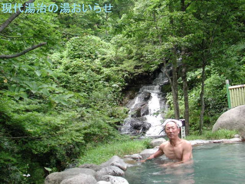 R三沢駅から徒歩5分の位置にあり、。73万平方mの広大な敷地に温泉・ホテル・公園が点在しています。温泉は、敷地内の地下1050mから湧出する殆ど無色透明無味無臭のツルツル感を伴うアルカリ性の単純温泉をかけ流しで利用しています。源泉は昭和46年に掘削開発されたもので、敷地内の六戸町側に所在します。内湯のお湯は、無色透明無味無臭で、ツルツル感があります。左手に熱湯があり、25人のサイズの浴槽で、湯口から加温掛け流しさけています。右手がぬる湯で、30人サイズの浴槽で、こちらの湯口は無く、熱湯と繋がっていての温め設定になっています。どちらの浴槽も総ヒバ造りと贅沢な印象を受けます。露天風呂は、スペースに露天風呂、水風呂、サウナがあります。露天風呂は30人サイズの「浮湯」と名付けられ、池の中に浴槽が浮いているような造りになっています。噴水状湯口から加温掛け流しになっています。浴槽に浸かっていると池の鯉が寄って来ます。素晴らしい庭園に感動すらします。