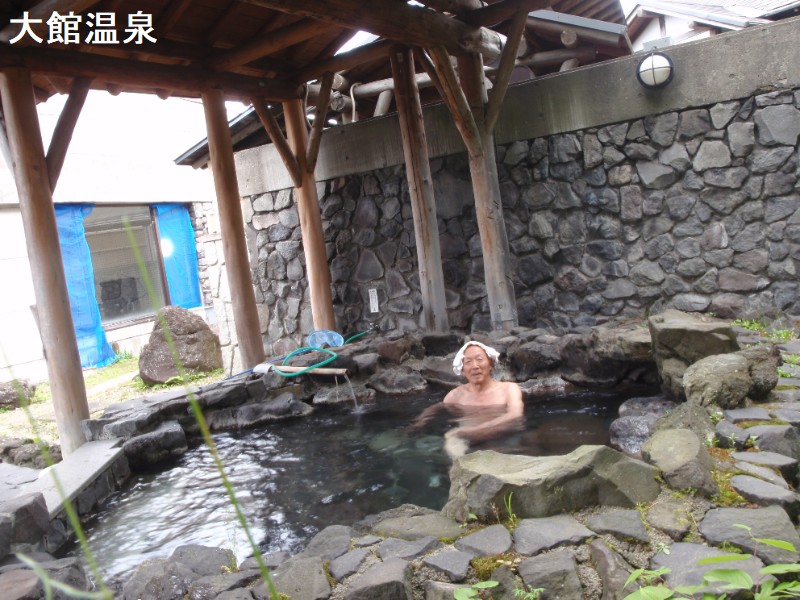 大館市の大滝温泉街にある日帰り温泉施設です。その昔、住民が大滝を通りかかったところ数十間離れた草むらの中へ、1羽の傷ついた鶴が舞いおり、このお湯にひたること数日して完治したことから神の授かりものとして、鶴の湯と名づけ近くに薬師堂を建て、住民が住みつくようになったそうです。また、旧藩時代には秋田藩主佐竹候が、ご湯治場として鶴の湯を利用したといわれています。男女別に内風呂と露天風呂があります。源泉温度が高温のため源泉に加水していますが塩素臭は感じません。内湯と露天の入り口は別で、内湯から露天へは直接行き来出来ないので露天へは脱衣場から行く事になります。内湯は浴槽が2ヶ所、主浴槽はやや熱めの5人サイズで掛け流しです。熱め浴槽は3人サイズで掛け流しになっています。お湯は無色透明、無味、微芒硝臭ありです。屋根付きの露天岩風呂は4人サイズで掛け流しです。露天はしっかりと芒硝臭がしたので露天の方が鮮度はいいと思います。