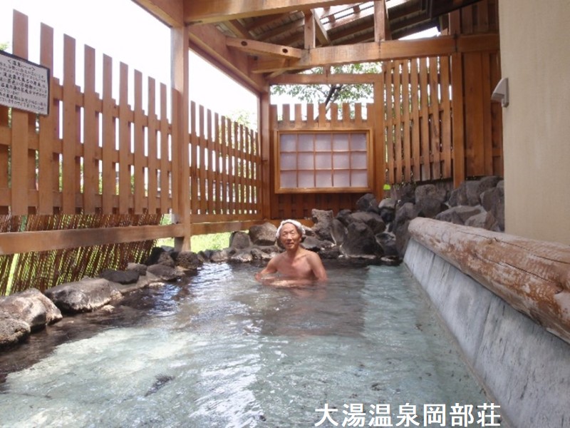 十和田大湯温泉は、開湯800年と歴史ある温泉地でもあるものの、街道に数件の温泉宿やホテルが建っています。「岡部荘」には4つのお風呂があり、それぞれでは別の源泉が使われています。一番の「売り」の大正風呂は、一番小さいですが、最も歴史があるもので、岡部荘創業以前の大正期から存在しており、今でも松材を刳り貫いた配管が使われています。浴槽も大正期から使い続けられている石造りの2~3人サイズで、投入される源泉は2種類が絶妙な湯加減がキープされています。無色透明、マイルドな塩味とタマゴ臭が特徴的で、ツルツルスベスベの気持ちよい浴感です。大潟川に面したロケーションの露天風呂は、川側は羽目板を格子状に立てて目隠しにしていますが、その隙間から川を眺めることは可能でした。こちらのお湯は一つの源泉を使用しており、知覚的には「桜の湯」に似ているように感じられました。湯中では褐色の小さな湯の華が浮遊しています。川面から吹いてくる風で火照った体をクールダウンしながら、せせらぎの音を耳にしてのんびり湯浴みするひとときは、まさに夢心地です。