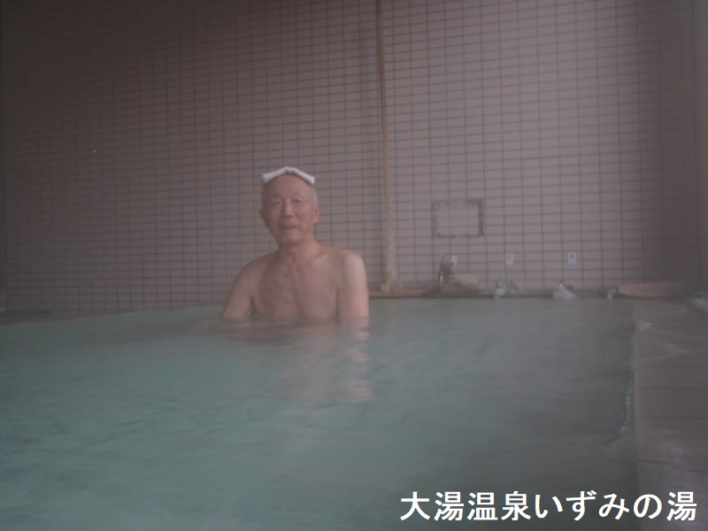十和田湖から発荷峠を越えて秋田県鹿角市に向かう国道103号線が大湯温泉の街にさしかかって、最初に大湯川を渡るのが大湯新橋ですが、この橋のたもとにいずみ荘があります。平屋建てのように見えますが、橋のたもとから入る入り口は2階部分で、浴室は下に降りた1階です。浴室には6人サイズの浴槽があります。浴室全体に共同浴場のような雰囲気が感じられます。浴室の窓からは眼下に大湯川の流れや対岸の景色を眺めることができます。湯口は2箇所あり、どちらからも熱いお湯が注がれています。無色透明のお湯からは、微タマゴ臭が感じられます。湯温はかなり高いので、何度も掛け湯してからお湯に浸かります。浴槽の切り欠けからは少しずつお湯が溢れ出していますが、ザブンとお湯に浸かると浴槽の縁からもお湯が溢れ出します。湯使いは、加水・加温・消毒・循環すべて「なし」の源泉掛け流しです。お湯の鮮度は抜群です。合計4箇所ある洗い場には鏡とシャワー付きのカランが設置されている。カランのお湯は源泉が使われていて、浴槽のお湯よりもタマゴ臭が強く感じられます。