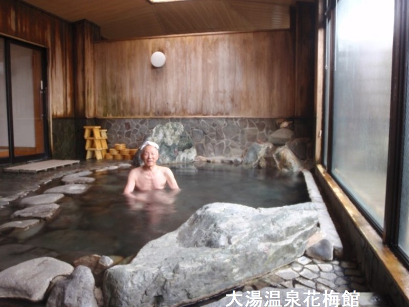 花海館は、鹿角市十和田大湯温泉のR103号沿いにあります。大きな看板の目印であり、日帰り入浴も快く受け入れてもらえるお宿です。浴室には立派な岩組の浴槽が一つあり、静かに注がれるお湯は上の湯源泉と、花海館の独自源泉の混合泉がかけ流しされています。湯温はやや熱め、肌触りは若干ですがツルリとした感じがします。浴室は、立派な岩組の浴槽が一つあります。静かに注がれるお湯は上の湯源泉と、花海館の独自源泉の混合泉がかけ流しされています。そのせいかはわかりませんが湯面からは硫黄臭より、やや石膏系の香りが強いような印象を受けます。湯温はやや熱め、肌触りは若干ですがツルリとした感じがします。4つある共同湯なんかとも、ちょいと違った湯浴みが出来ると思います。