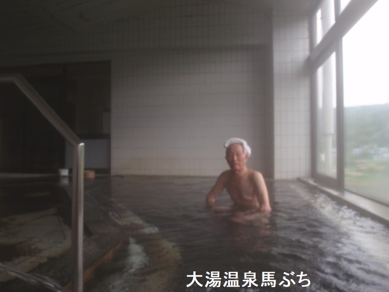 大湯温泉は、秋田県鹿角市にある温泉地で、「十和田大湯」とも名乗っています。江戸時代、下の湯は盛岡藩の保養地でした。盛岡鹿角を結ぶ来満街道の宿駅でもあり、街道を行き来する旅人などが1日の疲れを癒しました。不老倉や小坂など鹿角一帯の鉱山が盛んな頃は鉱山で働く人々の保養地として栄えました。近代になり十和田観光が盛んになるとその南玄関口として多くの観光客を迎えています。「馬ぶち」の温泉は、エレベーターで3階にいきます。そこに展望大浴場「里の湯」があります。右側がやや狭めで,左側がやや広めの浴室になっています。広い方の浴室は、内湯のみで、浴室は広い窓から明るい陽射しがさし込み,窓側に変形した多角形の浴槽が1つあります。湯口から注がれた湯は,反対側の浴槽の縁からかけ流されています。洗い場の床は贅沢に十和田石を利用しており,浴室全体をうっすらグリーン色に染め上げています。浴槽の底には玉砂利風のタイルが敷いてあり,歩くと足の裏に刺激が強く走ります。無色透明でやや熱めのお湯には小さな茶色の湯花も舞っていて,ほんのり香る温泉風の香りが心地よいです。