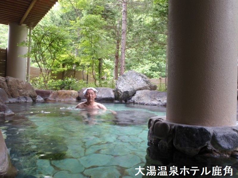 十和田湖南玄関口にあたる大湯温泉は、開湯800年の歴史があり、昔から「いで湯の里」「湯けむりの里」として多くの方から親しまれておりました。江戸時代には、この地をおさめていた南部藩主の保養温泉地に指定されていました。以来、南部領内五湯の一つとして「鹿角の名湯」大湯温泉は広く知れわたるようになりました。大湯温泉は四ヶ所の温泉が湧出する共同浴場が温泉小屋となり、次第に浴場近くには湯治宿が並び始めました。古より旅人の疲れを癒していたことは、いくつかの紀行文によって紹介されています。ホテル鹿角の浴場は、石造りと、モノトーンな内装の浴室で、大型ホテルらしい品のある空間になっています。サウナや水風呂も併設している大浴場は、大きな窓から外光が降り注ぐ開放感あふれる空間です。四季折々の景色を愉しみながら過ごせます。自然林に囲まれた露天風呂では、春の新緑、夏の生い茂る緑、秋の紅葉、冬の雪景色と、四季の風情を愉しめます。深い湯船の中には石がいくつも配置され、腰掛けてゆったりと湯浴みが堪能できるのも魅力です。