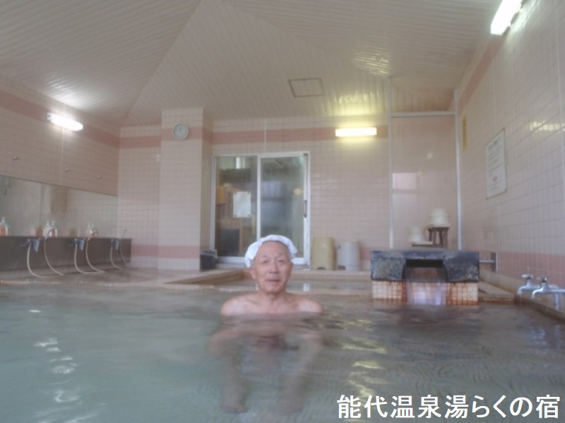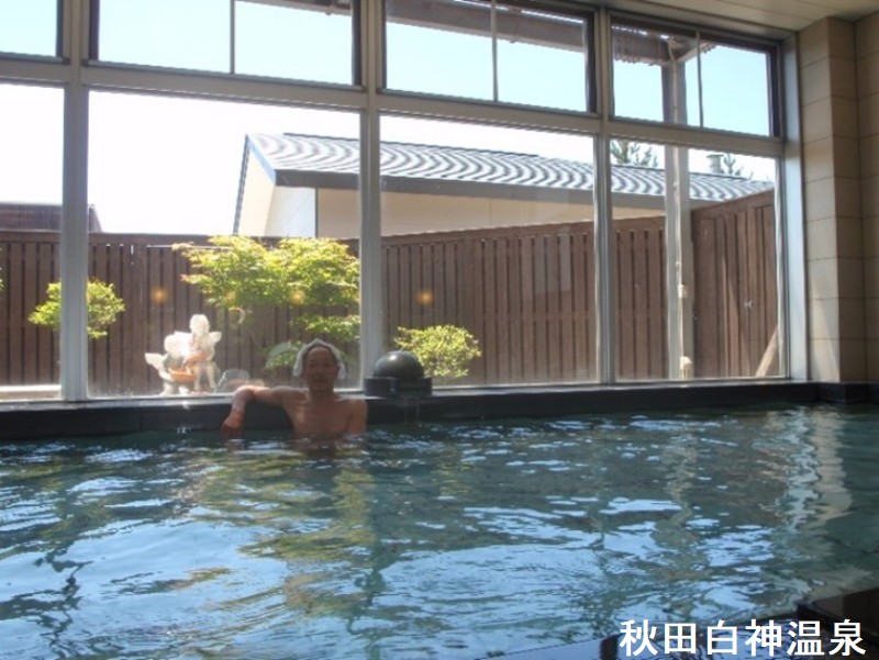 海岸線を走る五能線からの眺めのロケーションが素晴らしい能代は、絶景の日本海と世界遺産「白神山地」の緑豊な森林地帯に囲まれた最高のスポットが随所に見られます。唯一の温泉宿、「湯らくの宿」は、アルカリ性単純泉の肌に優しい天然温泉です。男鹿・能代の名勝地巡りの拠点ともなり、近くには能代海水浴場、南部には能代港や「白砂青松百選」などに選定されている「風の松原」があります。ダイナミックな日本海の風景と美味しい磯料理が楽しめる場所として人気です。風呂は、大浴槽に加え、サウナと水風呂、という標準的な構成です。お湯は無色透明無味無臭で、とくに感覚的な特徴はありません。ただ、入って暫くすると、ぬるぬる感が全身を襲います。これほどのぬるぬるは中々出会えないと思うほどです。データシートをよくよく見ると、pHはなんと驚異の9.1で、大分アルカリ寄りの単純泉で、溶存成分がさほど多い訳でもないし、なにがそうさせているのかは良く分かりませんが、このアルカリ性の強さがぬるぬるの理由なんだと思います。