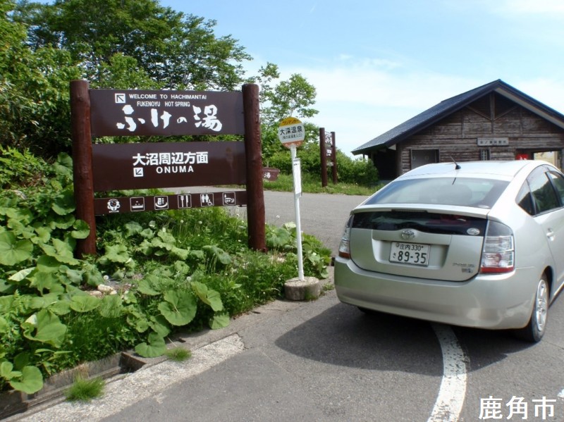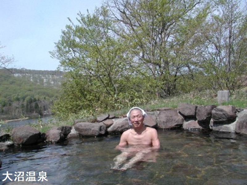 八幡平アスピーテラインには多くの温泉が点在しています。大沼温泉は後生掛温泉の近くの道路沿いに一見ドライブイン風な建物が目にとまります。温泉の前には大沼湖があり、周囲に散策コースがありました。温泉敷地の駐車場に鉄格子の中に大きなツキノワグマが飼育されています。生きているツキノワグマを目の当たりにする事が有りません。人間と比べてその大きさにビックリします。混浴露天風呂は階段を上がった二階にあります。そこは施設の裏の高台になっていて眼下に大沼湖が見渡せます。