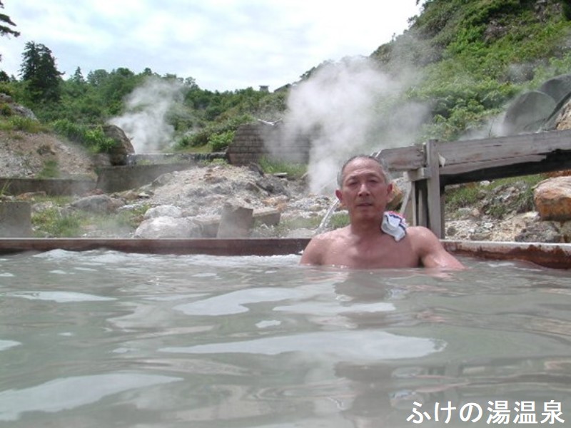 八幡平最古の湯として長い歴史を持つ蒸の湯温泉「ふけの湯」、この八幡平温泉郷は温泉郷として極上中の極上、全ての温泉がほぼ掛け流しであり質の良い湯の集まりです。標高1100メートルに位置しいたる所から湯煙がたっています。蒸の湯という名前の由来は「地熱を利用した蒸かしの湯として湯治で賑わったことから蒸の湯という名がついた」という事です。本館にある内風呂と露天風呂は、湯量は多くやさしい硫黄といった感じです。硫黄味に硫黄臭は、白というより灰色にごりです。浴感もまろやかで刺激はありません。湯温はちょうど欲、あがってからもしばらく汗がひかないほどよく温まります。露天風呂は、山の温泉へ来たな~と実感がします。入口の渡り木の下は、かけ流されていくお湯で白くなっています。辺り中に硫黄の匂いが漂っています。岩肌剥き出しの荒涼とした中にどーんと湯船があります。一帯は八幡平の樹海で、ブナやダケカンバ、アオモリトドマツの森の中です。マイナスイオンの含有量が日本最大らしい青みがかった乳白色の硫黄泉の向こうには、白い蒸気が立ち込めています。