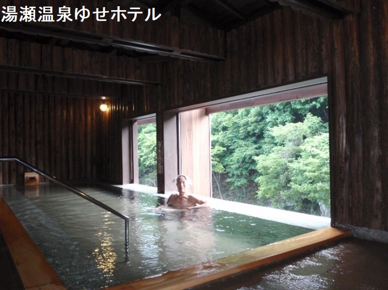 「川の瀬からお湯が湧き出していた」ところから「湯瀬」の名称が付けられたように、湯量が豊富でお肌にも非常に優しい温泉です。露天風呂では、渓流のせせらぎを聴きながら、覆いかぶさるように迫る山に生い茂る木々から季節の移ろいを五感で感じられます。 一方、大雨の際には、いくつもの滝が出現し、日ごろのせせらぎが一気に濁流と化し、自然の雄大さと奥深さを、間近に感じられます。浴槽は前後で大小に2分割されており、手前側の大きな方は浴槽内には2段のステップがあり、最下段は結構深めで、底にお尻をつけようとすると頭まで潜ってしまいそうな深さがあります。2段目のステップに座ると丁度良い感じで肩まで浸かれました。お湯がダイレクトに注がれるためか、湯加減もやや熱めです。奥側の小さな槽は奥行き深さも湯加減も一般的で万人受けしそうな造りなのです。お湯は無色透明で、弱い芒硝感を有しています。円筒の上に載せられている丸いお皿状の蓋には、硫酸塩の析出と思しき白い結晶が付着していました。浴槽を満たしたお湯は、浴槽の縁からふんだんにオーバーフローしています。露天風呂はロケーションもよく、お湯の質も内湯より優れているようです。石積みの湯口からは内湯とかわらない程の熱いお湯が供給されているのです。