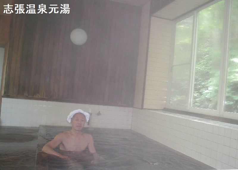 志張温泉元湯は、秋田八幡平の鹿角側入口にある志張温泉の2軒ある宿の一つです。国道341号線沿いの志張温泉ホテルの脇を通り、谷間の方へ行った先にあります。熊沢川の渓流沿いにあるこの静かな宿は江戸時代から沸き続けている温泉を利用しています。豊かな緑が広がるという恵まれた環境でキツネやタヌキも現れるそうです。静寂さの中でそんな自然を味わえます。館内の木造り浴槽には無色透明の湯が流れていました。源泉は「志張B泉」と「志張E泉」が混合されたもので無色透明の単純泉ながら、ゲルマニウムを含み温泉らしい仄かな重曹臭とアルカリ性特有のぬめりがあります。温泉の湧出温度は入浴適温で殆どそのまま入れます。