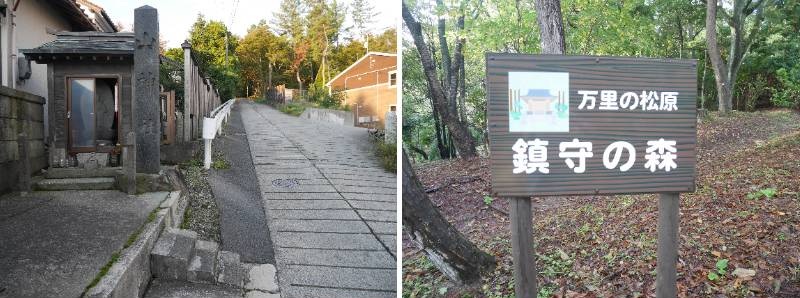 万里の松原は、宝暦8年(1758)、本間光丘が下の山王社境内を中心とし、南は最上川岸より北は高砂の境に至る地域に西浜砂防林の造成を自力を以って着手しました。延長約一千間(約1.8km)東西約二百五十間(約450m)で、海岸に強いといわれる能登の黒松を取り寄せて植え付けました。ぐみの木、合歓の木の苗を植え、定着をまって黒松の苗を植え、枯れた木は直ちに補植するなど、艱難辛苦の苦労も遂に実り、ここに一大松林が形成され、住民の悲願であった風砂の害を漸く克服するに至りました。光丘の没後、15年を経た文化13年(1816年)、酒田町民の有志は光丘の偉業を巨石に刻み、その公益を永世に伝えんとしました。撰文者の公厳は本間家の菩提寺の住職であす。碑文は神戸で刻み、海路運ばれたものです。