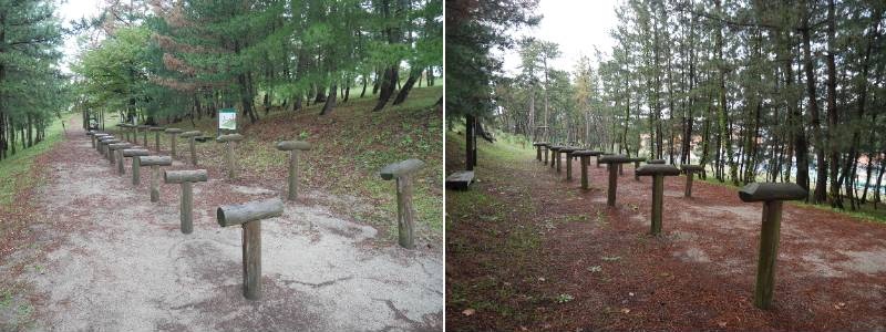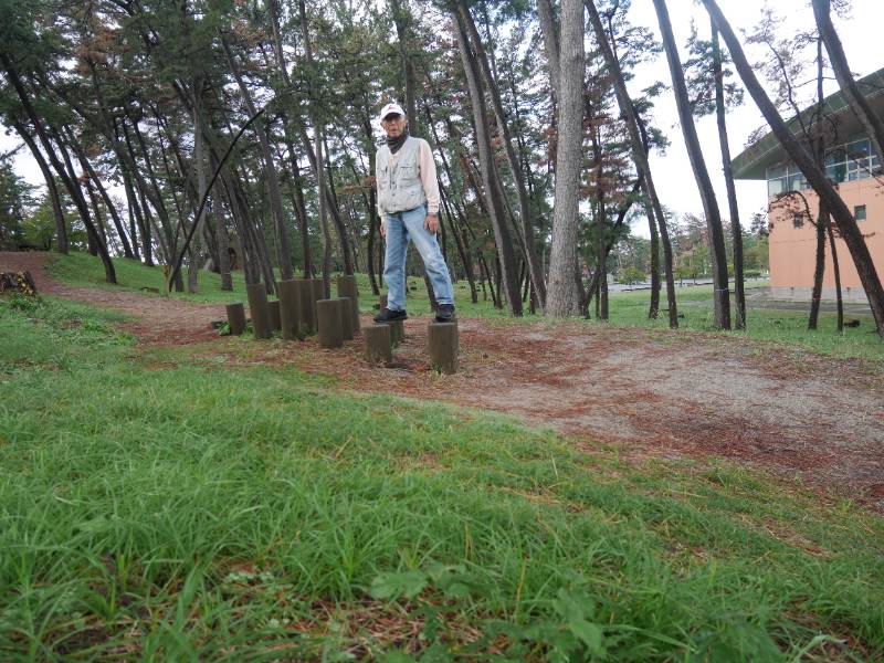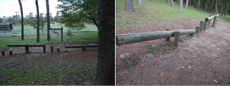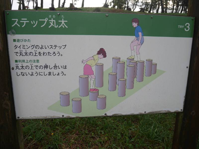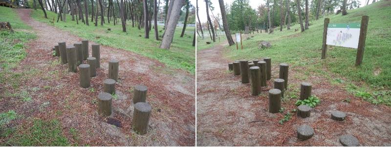 遊具の「ステップ丸太」は、丸い木(丸太)を横向きに並べ、段差を設けて子どもが昇り降りして遊べるようにした遊具です。一本の丸太を水平に置いたり、複数本を段差状にしたりして、またがったり飛び越えたり、登ったりといった多様な遊び方ができます。丸太を土台に固定するか、複数本を段差になるように並べたものです。バランス感覚や脚力、運動能力の発達を促すことを目的としています。