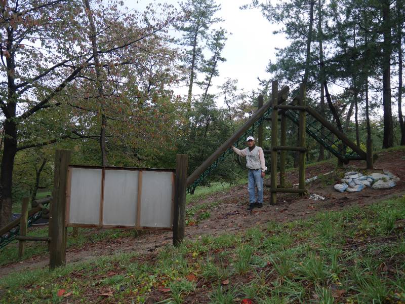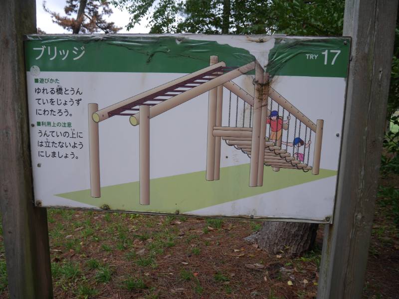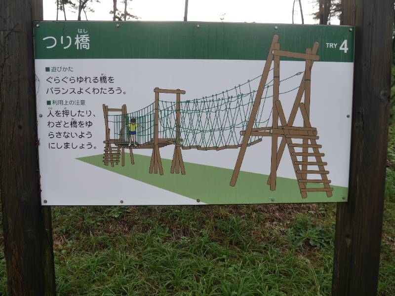 遊具冒険丸太渡りとは、木製の丸太でできたアスレチック遊具の一種で、メインケーブルから吊り下げられた構造を持つ吊り橋です。公園や遊園地にある、丸太の橋桁をロープで吊り下げ、渡るタイプの遊具を指します。主に木材(杉材など)が使用されています。塔の間を渡るメインケーブルから、ハンガーロープ(吊り下げロープ)で丸太の橋桁を吊り下げる構造です。木材保護のための加圧注入処理や表面処理が施されていますが、自然素材であるため、割れ、反り、ささくれなどが発生する可能性もあります。一般的には6歳から12歳が対象とされています。 公園やアスレチック施設などに設置されます。