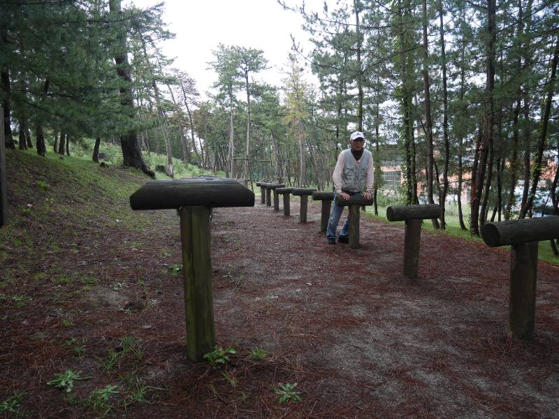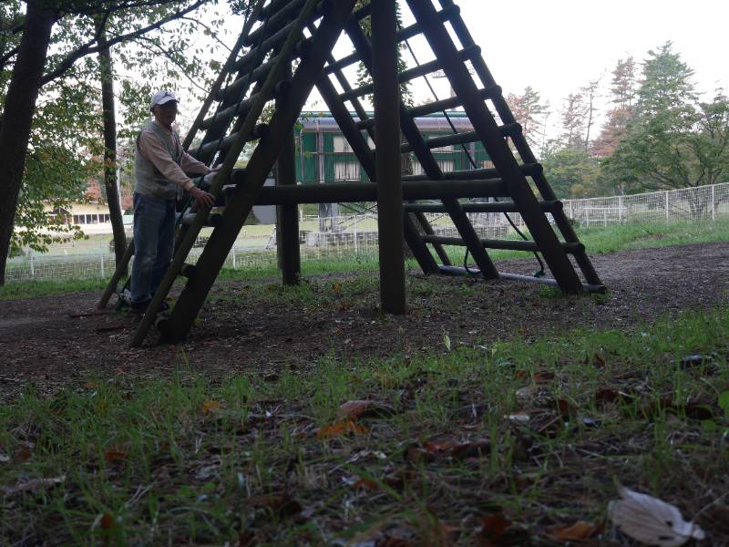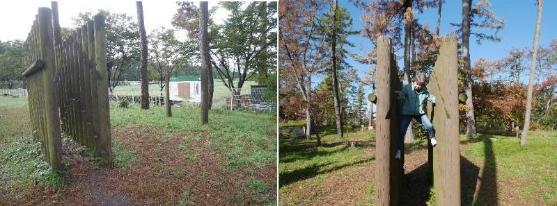 丸太凸凹登り」は、木を丸ごと使い、表面に凹凸が残された状態で、それを登るための遊びやトレーニングを指すと考えられます。アスレチック遊具の一種で、木材を主な素材とするものによく見られます。公園などにあるアスレチックの、丸太を横に並べたり、丸太にロープをつけたりして、手足を使って登っていく遊具を指すことがあります。山中にある自然に倒れた丸太や、公園などにある丸太をそのまま利用したもので、木の自然な形を活かした遊びやトレーニングです。樹皮が残っていたり、木目がはっきりと出ている丸太が使われることが考えられます。全身の筋肉を使い、バランス感覚や体幹を鍛えることができます。木の自然な感触を楽しみながら、自然の中で体を動かすことができます。