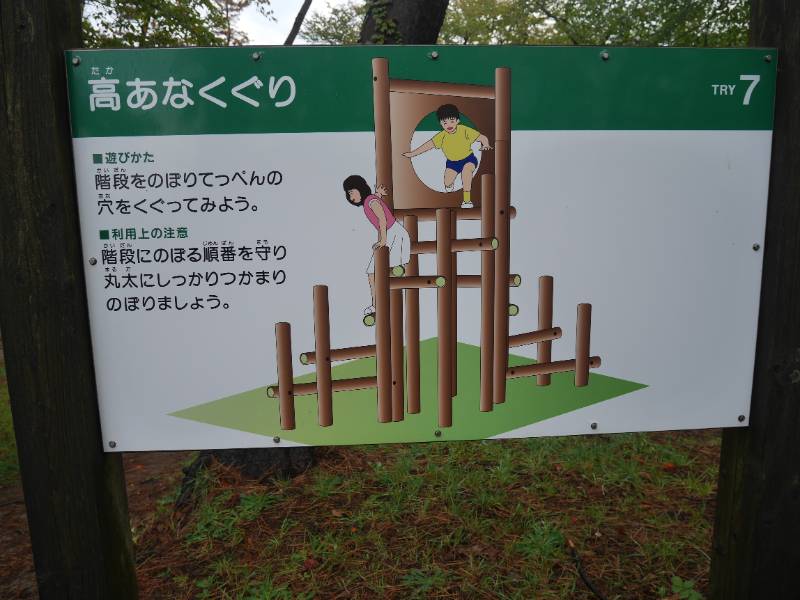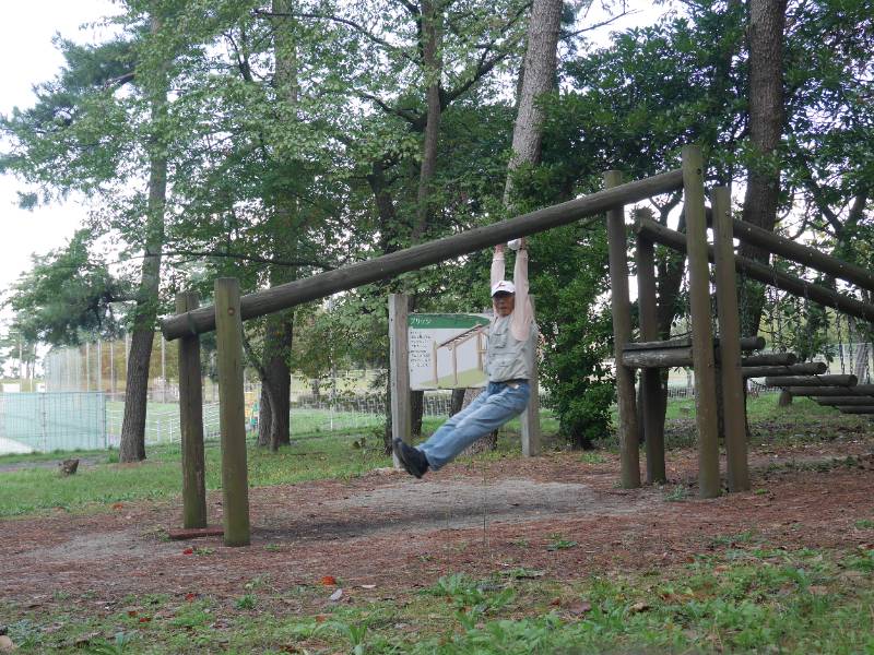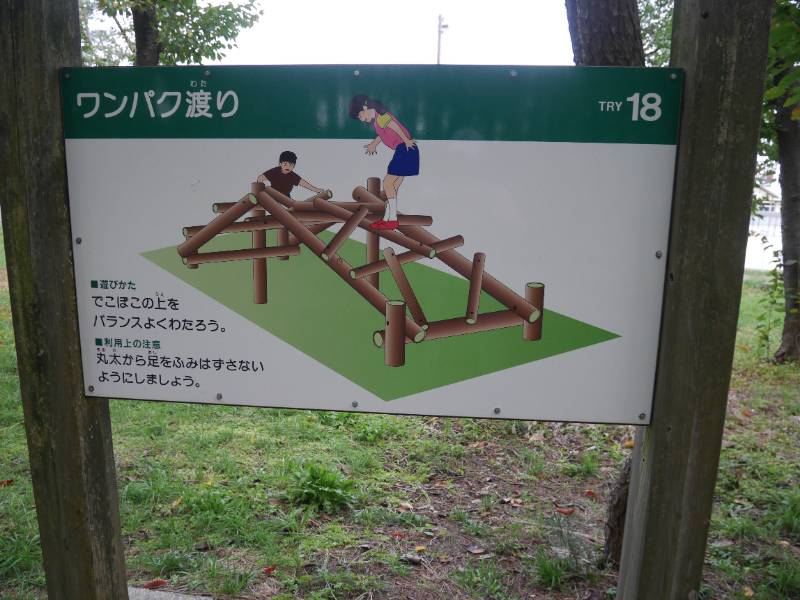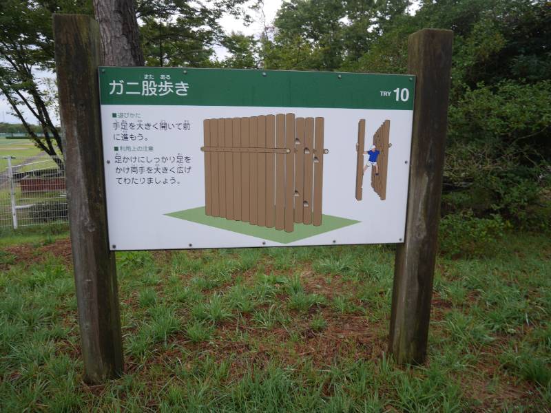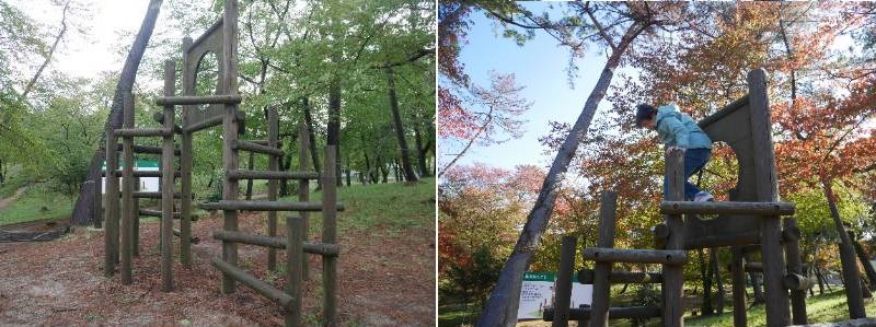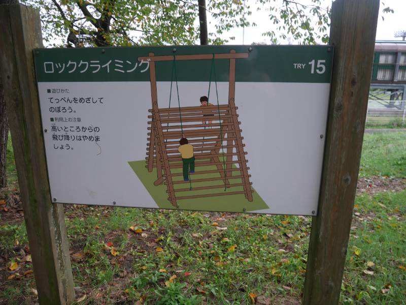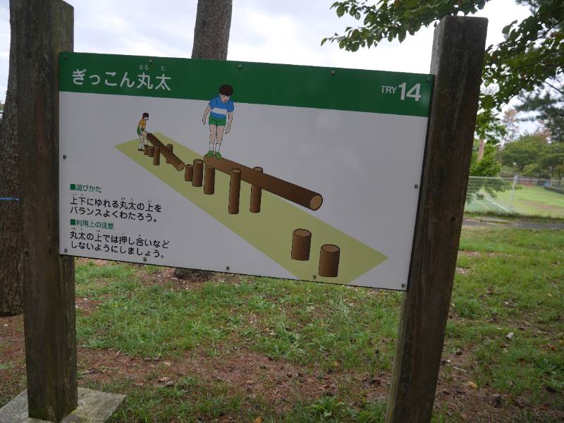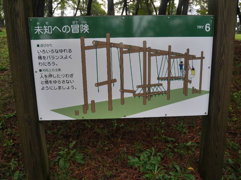 約49haの面積を持つこの広大な公園は、全天候型陸上競技場をはじめ、ナイター設備を持つ野球場、武道館、テニスコート、市民プール等も併設されています。 特に、運動場を囲うように作られたフィールドアスレチックコースが人気で、その長さは全長約930mあり、その途中にある「フクロウ展望台」や「ロッククライミング」、「吊り橋」等の計21種類のアスレチックに挑戦しながら園内を一周することでき、公園の遊具では遊び足りない小学生や大人も一緒に体を動かすことができます。