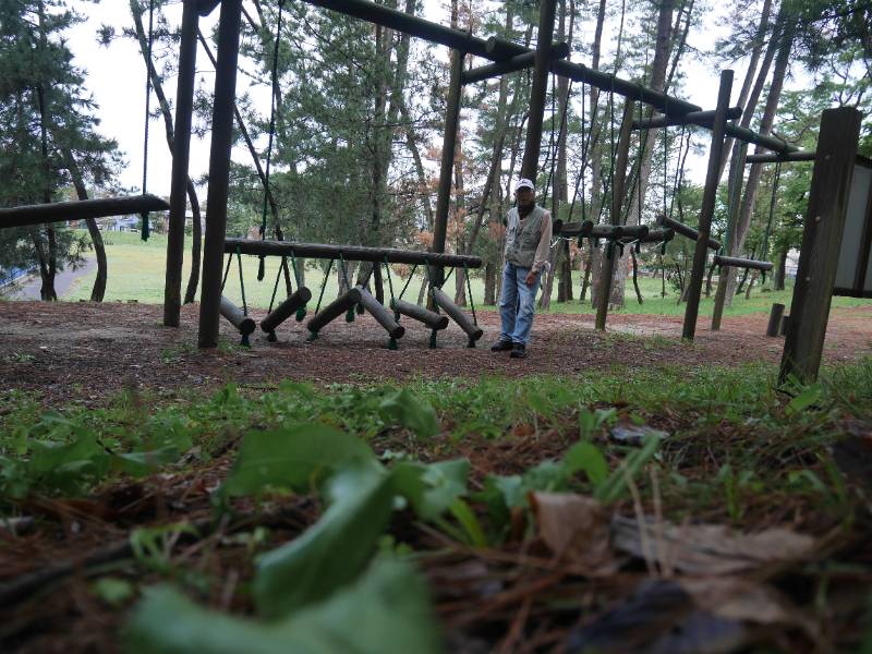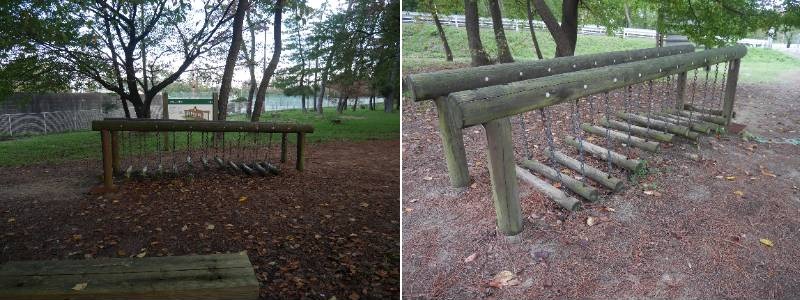 「丸太吊り橋渡り」とは、丸太や木材で作られた丸木橋(丸木橋)を渡る遊びやアクティビティのことです。文字通りには丸太を一本渡した橋を渡ることを指しますが、アスレチック遊具として提供される場合は、丸太や平均台を使って橋を渡る遊具を指すこともあります。丸太や平均台などを探し、谷底にワニがいるなどと想像しながら、他の人と押し合いながら相手を落とさないように渡ります。
