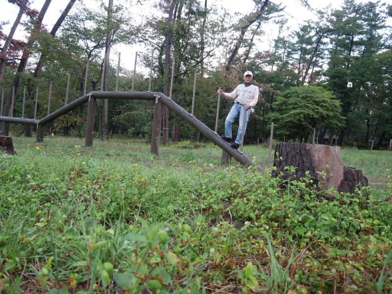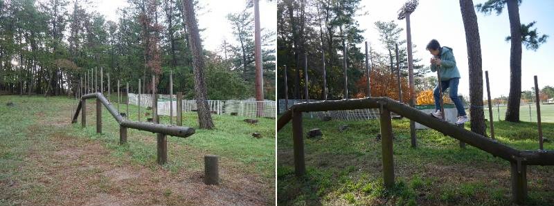 丸太アジリティコースとは、犬のアジリティトレーニングで使用される障害物の一つで、丸太の上を走ったり、飛び越えたりします。アジリティは、犬と飼い主が協力してハードルやトンネルなどの障害物をクリアしていくドッグスポーツです。丸太は、犬のバランス感覚や敏捷性を養うために使われます。バランスを取りながら丸太の上を走る練習です。丸太を飛び越えることで、瞬発力とジャンプ力を養います。ハードル、トンネル、シーソー、スラロームなど、他の障害物と組み合わせてコースが構成されます。